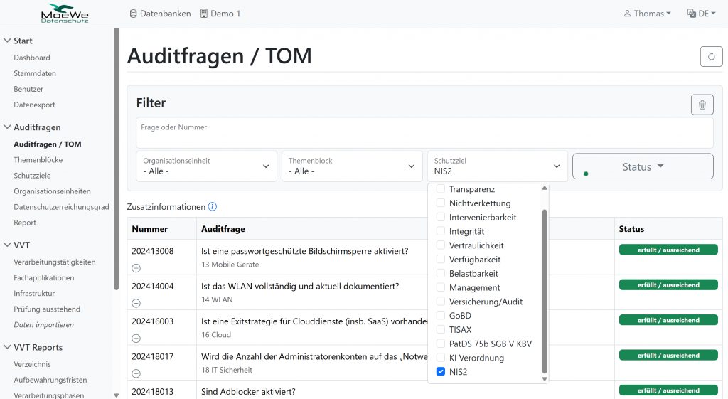 - Compliance auf Knopfdruck – egal ob Datenschutz, Informationssicherheit, TISAX oder NIS2.