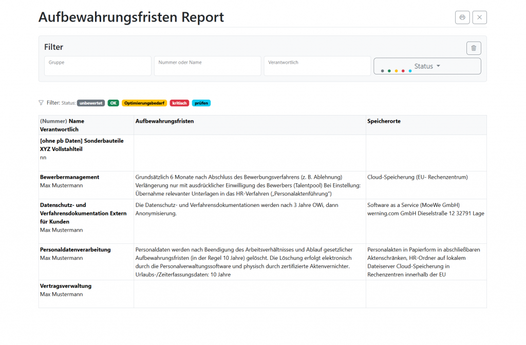 - Nachweise auf Knopfdruck – für Aufsichten, Mandanten oder Zertifizierungen.