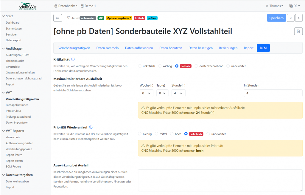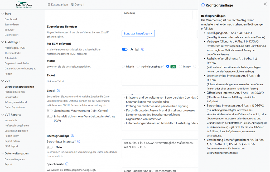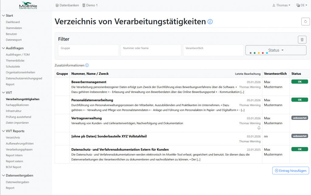 Effiziente Dokumentation und Bewertung von Verarbeitungstätigkeiten, Fachanwendungen und IT-Infrastruktur – mit automatisierter Risikoeinstufung.